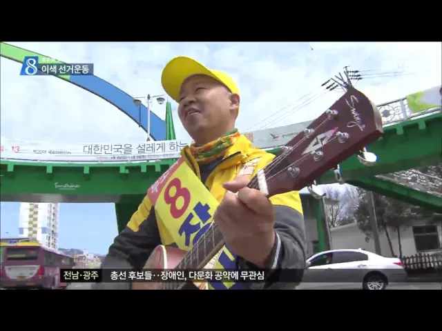 ◀ANC▶ 선거철이면 흔히 보는 시끄러운 차량 유세 대신 후보가 직접 노래를 부르며 유권자들을 만난다면 어떨까요. 자신만의 색을 드러내며 개성 넘치는 방식으로 선거를 준비하는 후보들을 권남기 기자가 만나봤습니다. ◀VCR▶ 사거리에 혼자 서서 통기타를 치며 홀로 아리랑을 부릅니다. 이름도, 번호도 없는 상의에 ...