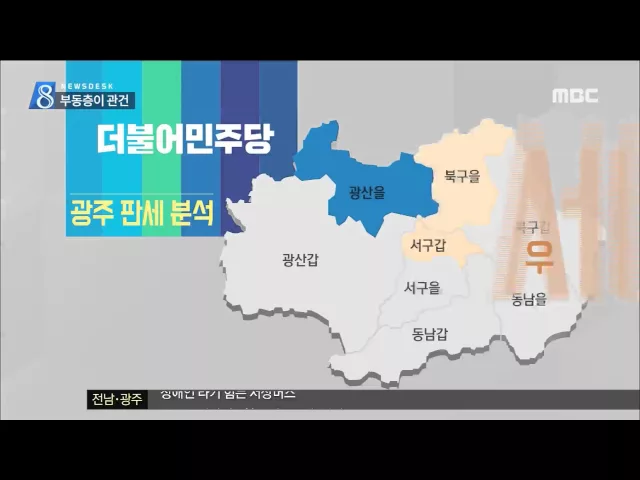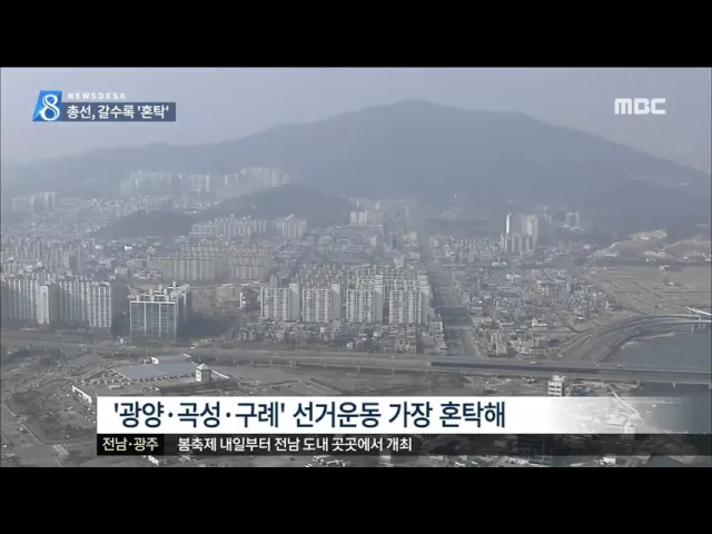 (앵커) 4.13 총선, 공식 선거운동이 중반으로 치닫고 있는데 .. 텃밭을 다투는 더민주와 국민의당은 현재 판세를 어떻게 보고 있을까요? 현재까진 국민의당이 한발 앞서가고 있는 것으로 분석되는데 ... 선거 막판 부동층 향배와 전략적 선택이 승부를 가를 것으로 전망됩니다. 윤근수 기자의 보도 (기자) 광주는 국민의 당...