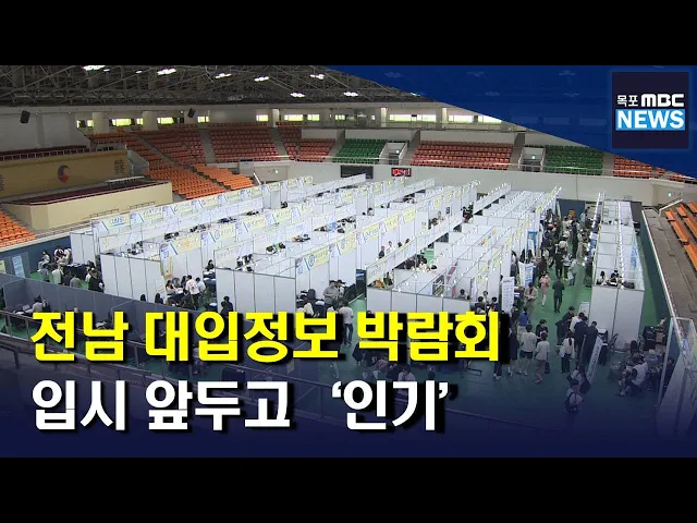 ◀ANC▶ 2024학년도 대학 입시를 앞두고 전남에서 '대입정보 박람회'가 열리고 있습니다. 상대적으로 입시 정보가 취약한 전남지역 학생과 학부모들에게는 좋은 기회가 되고 있습니다. 박종호 기자가 취재했습니다. ◀END▶ ◀VCR▶ 전남 목포 실내체육관에 전국에 있는 대학들의 홍보 부스가 마련됐습니다. 학생들은 관...