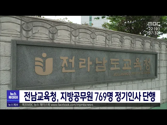 전남교육청이 내년 1월 1일자 정기인사를 단행했습니다. 전라남도교육청은 나주공공도서관장 직무대리에 김도진 총무과장을, 정책기획과 교육협력관에 한종덕 안전교육팀장을 발령하는 등 승진 130명, 신규임용 81명 등을 포함해 모두 769명의 공무원 정기인사를 단행했습니다.