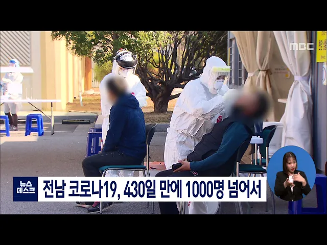 지난해 2월, 나주에서 첫 확진자가 발생한 지 430일 만에 전남의 코로나19 확진자가 1000명을 넘어섰습니다. 전남도는 하루 평균 확진자가 2.3명으로 전국에서 가장 낮은 수준을 보이고 있고, 인구 10만명당 발생률도 54명으로 전국에서 가장 낮습니다. 전남에서는 지금까지 100만8천여 건의 진단검사가 완료돼 하루 평균 2...