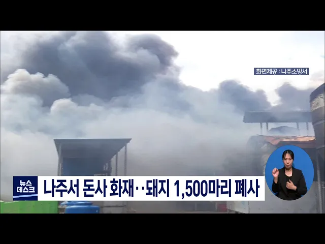 나주서 돈사 화재..돼지 1500마리 폐사