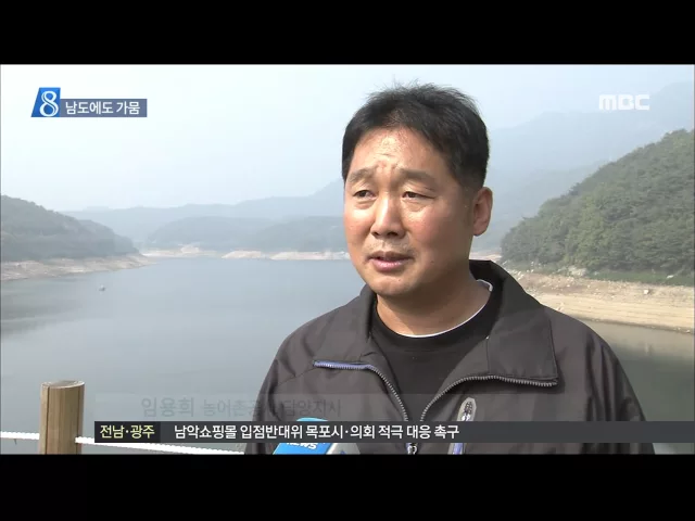 (앵커) 가을 가뭄이 계속되면서 광주*전남의 댐 저수율이 크게 떨어져 농민들의 걱정이 커지고 있습니다. 광주전남 도심에는 미세먼지가 쉽사리 걷히지 않고 있어 건강 관리에 각별한 주의가 필요해졌습니다. 이계상 기자.. (기자) 담양댐 수위가 내려가면서 상류지역이 메마른 속살을 드러냈습니다. 군데 군데 바닥이 갈라...