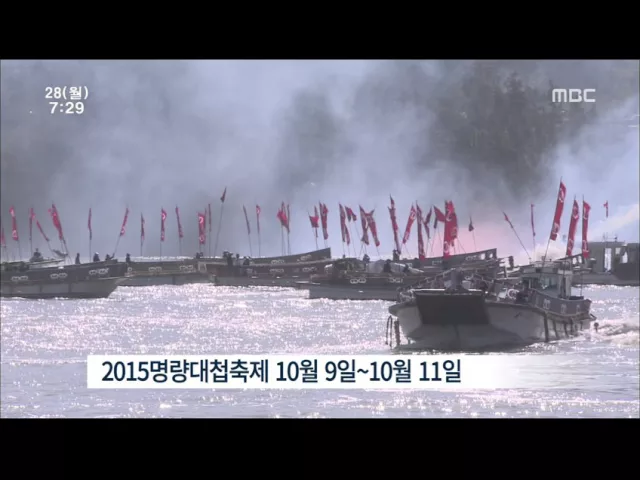 ◀ANC▶ 편안한 휴일 보내고 계십니까. 계속해서 광주*전남지역 소식 전해드립니다. 세계 해전사에 다시 없을 이순신 장군의 명량대첩이 5백여년 만에 오늘 울돌목 해상에서 재현됐습니다. 옛 추억과 아름다운 가을 경치 가득한 축제도 열리고 있습니다. 양현승 기자가 보도합니다. ◀END▶ ◀VCR▶ 가장 빠른 물살이 지...