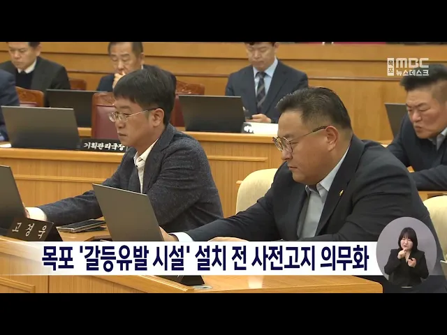 목포에서 갈등을 부를 수 있는 시설은 앞으로 설치 전에 사전고지가 의무화될 전망입니다.목포시의회 최원석 의원이 대표 발의한‘갈등유발 예상시설 사전고지 조례’ 개정안은시설 설치와 관련된 정보 공개와 의견 수렴을강화해 갈등에 따른 사회적 비용을 줄이기 위한 것입니다.개정안에는 사전고지 대상에 시장이 주민 건...