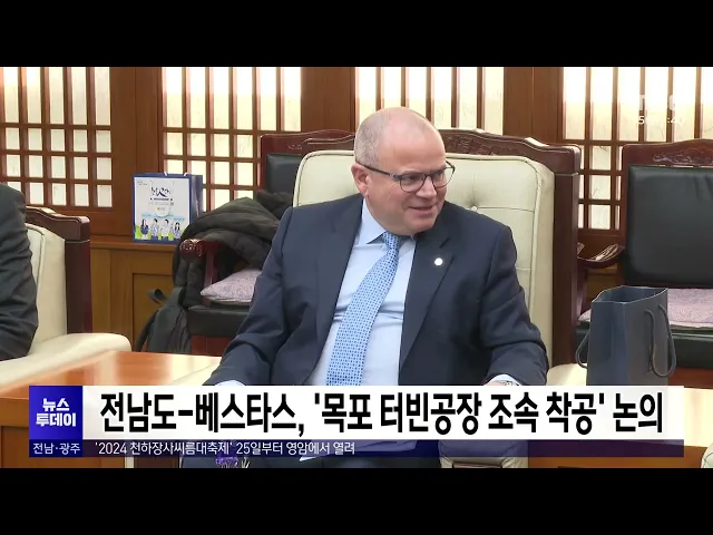 세계 최대 풍력발전 터빈 공급 기업 중 하나인베스타스가 전라남도와터빈 공장 착공 연기에 따른대책을 논의했습니다.김영록 도지사와 헨릭 앤더슨 베스타스 회장은오늘(14) 전남도청에서 만나 터빈 공장을 2년 내에 착공하기 위해 물동량 확보를 위한 신안 집적화 단지 조기 지정 등에 협력하기로 했습니다.앞서 베스타스...