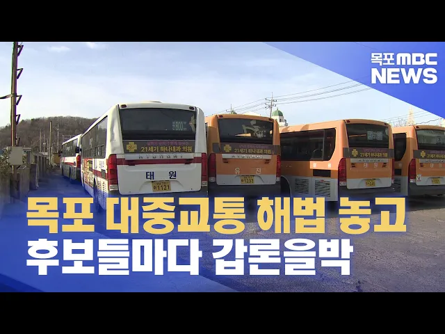 ◀ 앵 커 ▶ 오늘 토론회에서는 목포 시내버스 전면개편과 노선권 매입을 두고도 후보들마다 서로 다른 생각을 드러냈습니다. 토론내용을 김 윤 기자가 정리했습니다.◀ 리포트 ▶ 지난 2천22년부터 지난해 초까지 백여 일 동안 시내버스 운행중단이라는 초유의 사태를 맞았던 목포시. 목포시내버스 운영체제 개편이 대두됐고 ...