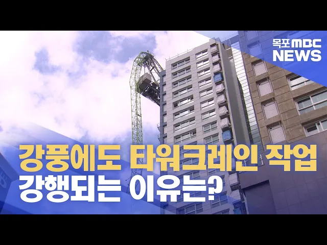 ◀ 앵 커 ▶목포 아파트 공사현장에서 발생한타워크레인 사고 속보 이어갑니다.크레인이 꺾여버린 사고 당시 현장에 불었던 바람은 작업 허용 순간풍속 기준을 넘었던 것으로확인됐습니다.그런데 현장 타워크레인 기사들은 강풍이 불더라도 사실상 작업 중지를 요청하기는 어렵다고 말합니다.안준호 기자가 취재했습니다.◀ 리...