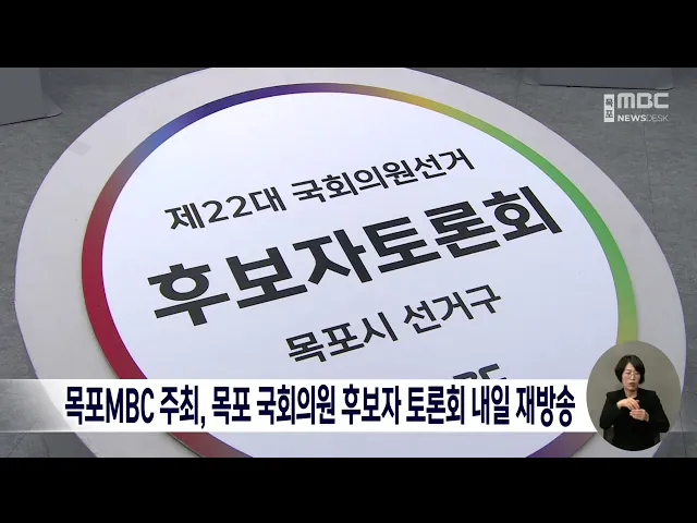 목포MBC 주최, 목포 국회의원 후보자 토론회 내일 재방송