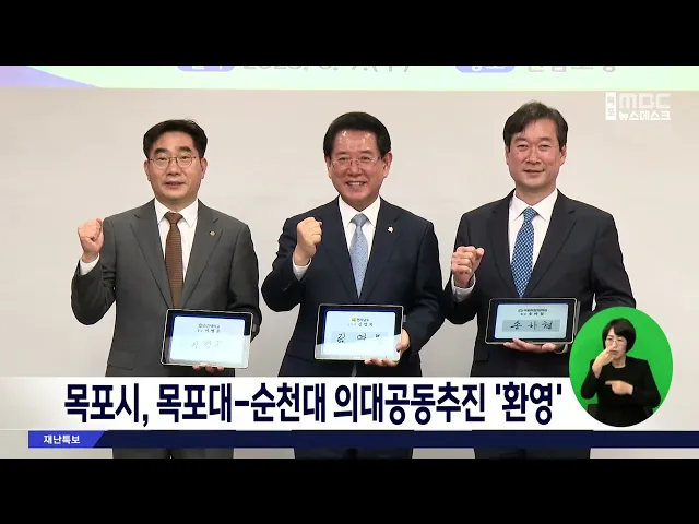 목포시는 "전남권 공동 단일 의과대학 추진을 전격 결정한 목포대와 순천대의 발표"에 환영의 입장을 나타냈습니다. 박홍률 목포시장은 목포대학교와 순천대학교의 공동의대 설립과 관련해 "지역 의료 붕괴 위기를 극복하기 위한 대승적 결단"으로 매우 높게 평가한다고밝혔습니다.