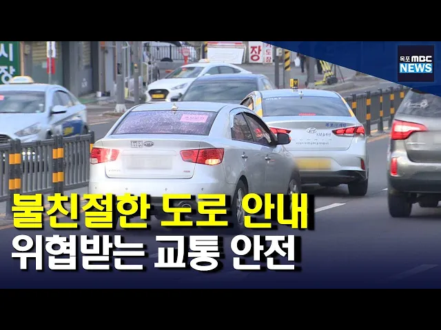◀ 앵 커 ▶ 목포지역 일부 도로 차선이 갑자기 줄어들어 운전자들이 혼란스러워 하고 있습니다. 또 일부 바닥 유도선은 제대로 지워지지 않은 채 방치돼 있어 교통사고 위험을 키우고 있습니다. 안준호 기자가 취재했습니다. ◀ 리포트 ▶ 늦은 밤 목포의 한 교차로 교차로를 지나다 보니 두가지 도로 유도선이 보입니다. 하나...