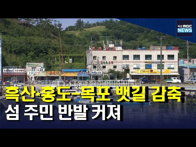 ◀ 앵 커 ▶ 흑산도와 홍도에서 목포를 오가는 쾌속여객선이 운항 횟수를 감축했습니다. 흑산도와 홍도 주민들은 사전에 주민 의견을 묻지 않은 해수청과 선사 측의 일방적인 통보라며 거세게 항의하고 있습니다. 안준호 기자가 취재했습니다. ◀ 리포트 ▶ 하루 3차례 운영되던 목포-홍도 항로가 하루 2차례로 줄어든 건 지난 ...