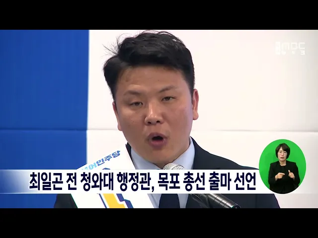 최일곤 전 청와대 국정상황실 행정관이내년 목포 총선 출마를 선언했습니다. 최일곤 예비후보는"실종된 목포 정치를 찾기 위해마땅히 의무와 책임을 다하겠다"며문제 해결을 위한 정치를 시작하겠다고출마의 변을 밝혔습니다. 목포 출신인 최 예비후보는전 청와대 국정상황실 행정관,전 민주당 중앙위원 등을 역임했습니다...