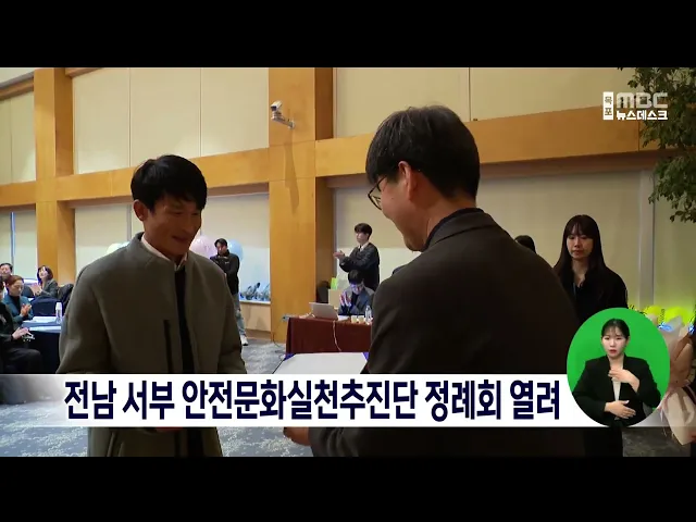 고용노동부 목포지청과 한국산업안전보건공단 전남지역본부 등이 참여하는 전남 서부 안전문화실천추진단 4분기 정례회의가 오늘(6) 호텔현대에서 열렸습니다.안전문화실천추진단은위험성평가 우수사업장 인정서 수여와 함께올해 안전문화실천추진단 활동 실적을 공유하고 산재예방을 위한 효율적인 기관 협업 방안 등을 논...