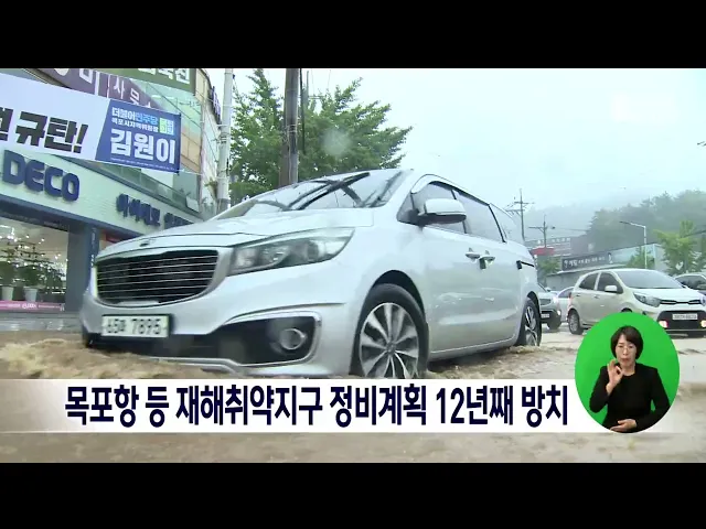 목포에서 침수 피해가 반복되는 가운데 이를 방지할 정비 계획이 마련됐음에도 10년 넘게 방치된 것으로 확인됐습니다. 국회 신정훈 의원이해양수산부로부터 받은 자료에 따르면2011년 재해취약지구 정비계획 대상 시설96곳 가운데 목포항을 포함한 25곳은 현재 공사를 시작하지도 못 했습니다. 목포항의 경우 재해발생위...