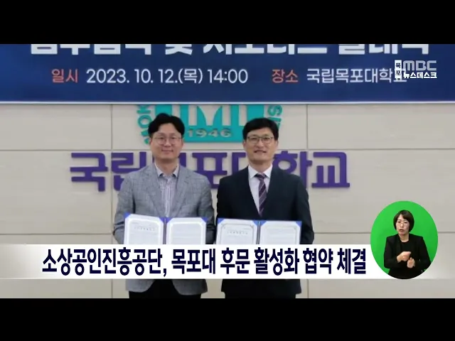 소상공인시장진흥공단 목포센터는 오늘(12일) 목포대학교와 ‘지역상권 활성화와 동반성장을 위한 업무협약’을 체결했습니다. 협약에 따라 두 기관은 목포대 후문 활성화를 위한 온누리 상품권 지원과 홍보, 대학생 취창업지원 활동에 공동 노력하기로 했습니다.