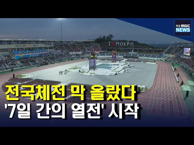 ◀ 앵 커 ▶ 15년 만에 전남에서 열리는제104회 전국체전이 오늘 목포에서개회식과 함께 시작했습니다.전국체전은 목포 등 전남 일원에서7일동안 펼쳐집니다.김진선 기자가 보도합니다.◀ 리포트 ▶ 전국 체육인들의 최대 축제,제104회 전국체육대회가 개막했습니다.전국 17개 시도 선수단과 18개국 해외동포선수단 등 2만 9천...