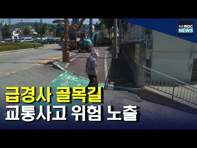 ◀ANC▶ 최근 목포의 한 교차로 인근 도로에서 우회전하던 차량과 골목길을 나오던 차량이 충돌하는 사고가 발생했습니다. 사고가 난 골목길은 급경사여서 교통사고 위험이 매우 높은 곳인데요 근본적인 사고예방 대책 마련이 시급합니다. 서일영 기자가 취재했습니다. ◀END▶ 승용차 운전석이 도로에 맞닿은 채 옆으로 ...