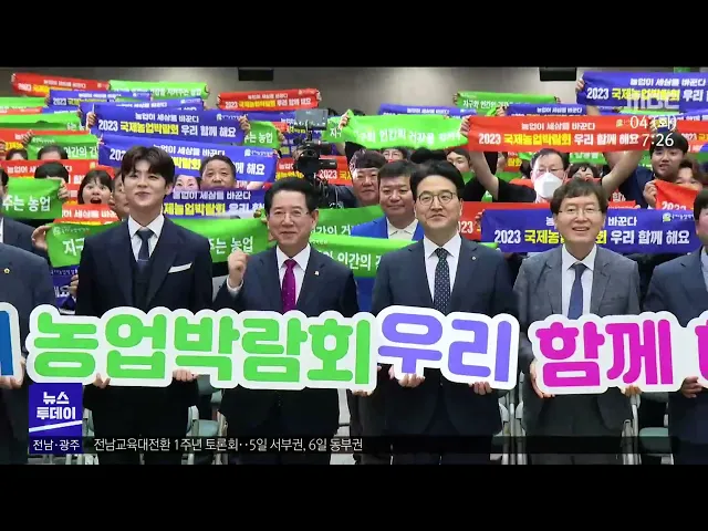 전라남도는 전남교육청 등 17개 유관기관과 2023 국제농업박람회 성공개최를 위한 관람객 유치와 농산물 마케팅 협약을 체결했습니다. 전라남도는 목포 출신 트로트 가수 박지현 씨를 국제농업박람회 홍보대사로 위촉하고 유관 기관단체와 함께 프로그램 참여와 입장권 구매, 관람객 유치 등에 적극 협력해 나가기로 했습니...