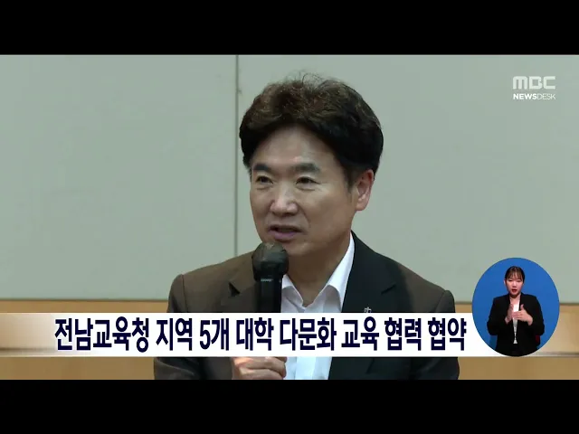 전남도교육청은 목포대, 목포해양대, 세한대, 초당대, 동신대 등 5개 대학과 지역소멸 위기 극복과 상생을 위한 다문화 교육 협력 협약을 체결했습니다. 협약에 따라 도교육청과 5개 대학은 다문화 교육 관련 전문인력들을 확보하고, 대학과 연계한 이중언어 교육 서비스를 방과후 학교 등에 제공할 예정입니다.