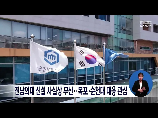 보건복지부와 교육부, 의사협회가 의대 정원 확대로 가닥을 잡으면서 전남 의대 신설이 사실상 무산된 가운데, 목포대와 순천대 대응 방향에 관심이 모아지고 있습니다. 목포대와 천대는 최근 공공의대 유치에 협력하기로 전남도와 합의한 상황인데 이른바 의정협의체의 향후 움직임을 보고 대응할 수 밖에 없는 상황이어서...