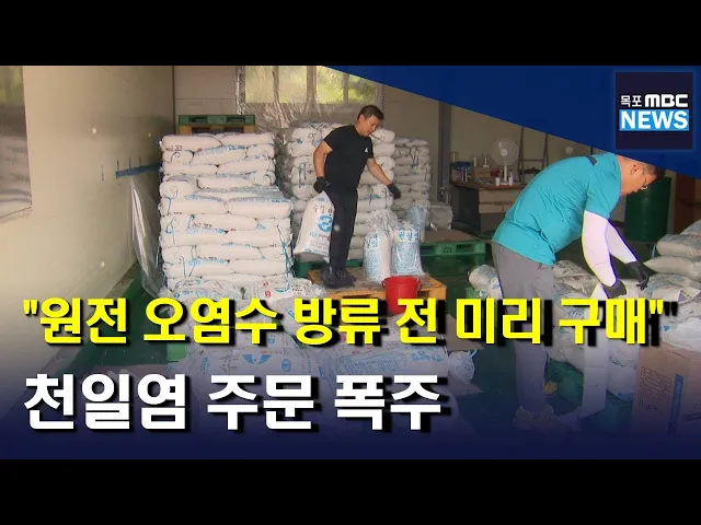 ◀ANC▶ 일본 후쿠시마 원전 오염수 방류 시기가 임박하면서 때아닌 소금 대란이 벌어지고 있습니다. 필수 조미료인 만큼 오염수가 방류되기 전 구매하겠다는 소비 심리로 천일염 주문이 폭주하고 있습니다. 김진선 기자가 취재했습니다. ◀END▶ ◀VCR▶ 천일염 주산지인 전남 신안군 수협 직매장. 전국에서 쏟아지는 ...