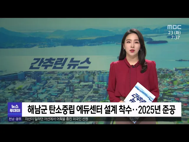 ◀ANC▶ 오늘의 간추린 뉴스입니다. 솔라시도 기업도시에 들어서는 탄소중립 에듀센터가 최근 설계에 착수했습니다. 해남군에 따르면 오는 2천25년 준공예정인 탄소중립 에듀센터는 국비 425억원을 투입해 연간 5만명을 교육할 수 있는 전시 체험공간으로 조성될 예정입니다. ---------- 영암군이 귀농 귀촌한 주민을 대상...