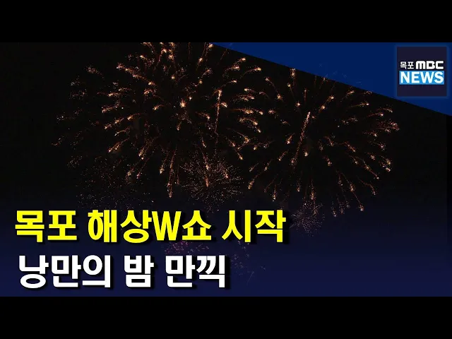 ◀ANC▶ 지난 주말 목포 평화광장에서 올해 첫 목포해상W쇼가 열렸습니다. 지역민과 관광객들은 화려한 불꽃 속에 낭만의 밤을 만끽했습니다. 박종호 기자가 취재했습니다. ◀END▶ ◀VCR▶ EFFECT 형형색색의 불꽃이 밤하늘을 가득 채웁니다. 환하게 밝혀주는 불꽃의 향연에 곳곳에서 탄성이 쏟아집니다. 코로나로 멈추...