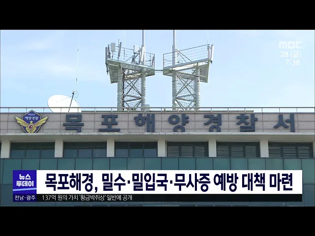 목포해양경찰서는 국정원, 목포세관, 여객선사 등 유관기관들과 함께 해상 밀수, 밀입국, 무사증 등 해양 국제범죄 예방 대책 마련에 나섰습니다. 목포해경은 외해에서 내해로 진입하는 미식별 선박과 제주-목포 간 운항 여객선, 화물선, 어선에 대한 검문검색을 강화하고 시간대별 해상과 육상 집중 순찰을 실시할 계획입...