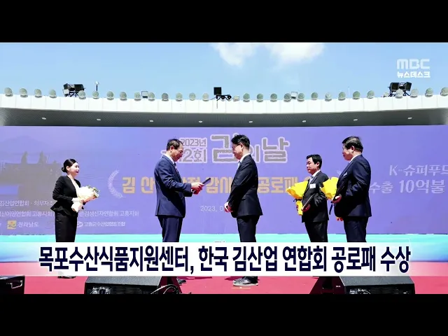 목포수산식품지원센터가 제12회 김의 날 맞아 한국 김 산업 발전에 기여해 공로패를 수상했습니다. 목포 수산식품지원센터는 그동안 해양수산부, 전라남도, 시의 지원을 받아 김제품의 품질 향상과 신제품 개발 등 다양한 김산업 연구·개발을 통해 전문적인 연구역량을 구축해 왔습니다.