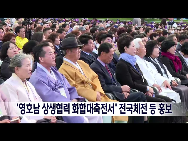 전라남도는 순천만국제정원박람회장 일원에서 열린 ‘영호남 상생협력 화합 대축전’에 홍보관을 운영해 전국체전과 국제수묵비엔날레를 홍보했습니다. 홍보관에선 홍보영상 송출, 상징물 전시, 체험행사 등 다양한 홍보활동이 펼쳐져 관람객 시선을 끌었습니다. 한쳔 전국체전은 10월 13일부터 7일간 목포를 중심으로 전남 2...