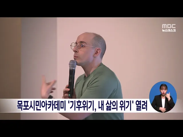 목포시민아카데미가 오늘 '기후위기, 내 삶, 내 사람의 위기'라 주제로 목포MBC 공개홀에서 열렸습니다. 강사로 나선 방송인 타일러 라쉬는 기후 위기에 대응하기 위해 친환경 기업을 이용하고 관련 제도를 확립하는 등 규모있는 실천이 필요하다고 강조했습니다.