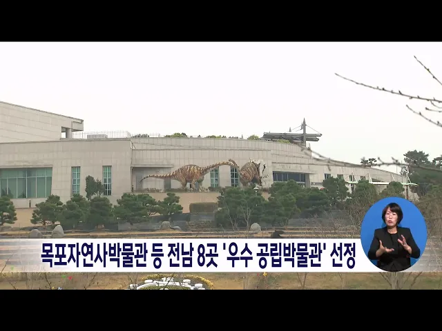 전남지역 8개 박물관이 전국 우수 공립박물관에 선정됐습니다. 이번에 선정된 곳은 목포자연사박물관과 해남공룡박물관, 고려청자박물관 등입니다. 전남에는 국립박물관 2곳과 공립박물관 27곳이 운영되고 있습니다.