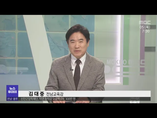 ◀ANC▶ 각 기관,단체의 올해 계획을 들어오는 시간입니다. 오늘은 김대중 전남교육감으로부터 전남교육청이 올해 역점적으로 추진하려는 주요 현안에 대해 이야기 나눠보도록 하겠습니다. ◀END▶ 1. 지난해 발표했던 학생수당에 대한 관심이 높은 상황인데 올해 지급이 되는건지 궁금합니다. - 올해 반드시 지급을 시작...