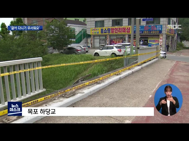 ◀ANC▶ 교통사고가 발생해 안전난간이 부서졌어도, 공원 시설이 망가져 있어도 그대로 방치돼 있는 곳이 많습니다. 걸어다니기 무섭다는 말이 나올 정도로 시민 안전이 위협받고 있습니다. 양정은기자가 취재했습니다. ◀END▶ 다리 난간 가운데 15미터 가량이 부서져 있습니다. 곳곳에는 자동차 파편이 나뒹굴고 있습니...
