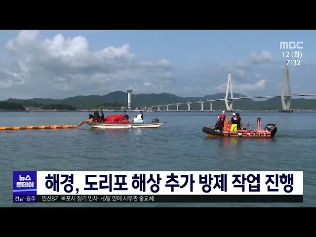 해경이 어제 무안에서 발생한 기름유출 추가 방제작업을 진행합니다. 목포해경은 오늘 오전부터 무안군 도리포 해상에서 유출된 기름을 추가로 제거할 예정이며, 성분조사를 통해 정확한 유종 등을 확인할 계획입니다. 또, 준설선 소유주와 지자체 등을 대상으로 선박 예인 여부 등을 협의할 예정입니다.