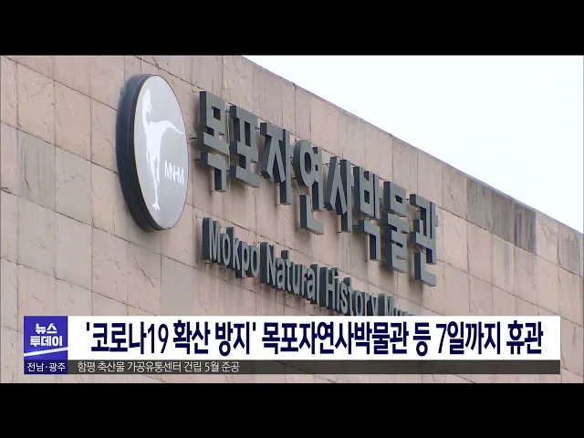 목포시가 코로나19 확산 방지를 위해 목포자연사박물관 등을 오는 7일까지 휴관하기로 했습니다. 목포시는 생활도자박물관과 문예역사관, 어린이바다과학관 등도 이 기간에 함께 휴관하기로 했습니다.