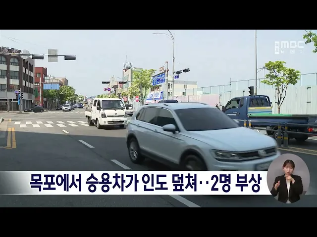 목포에서 승용차가 인도 덮쳐..2명 부상