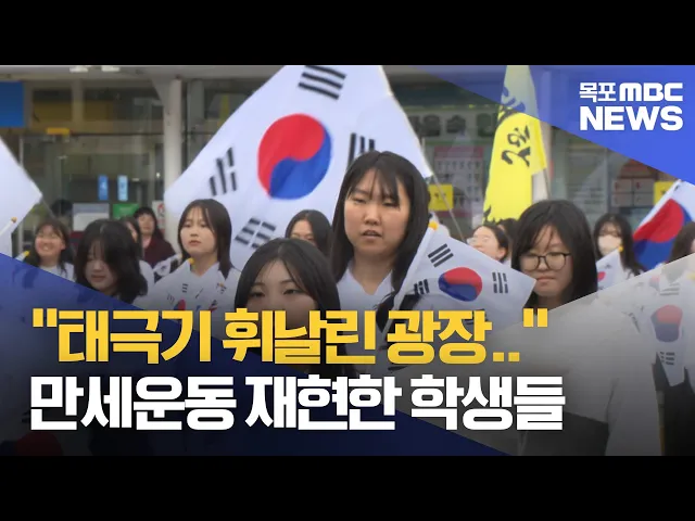 ◀ 앵 커 ▶광복 80주년을 맞아 당시 4.8만세 운동이 그대로 목포역에서 재현됐습니다.세기를 뛰어넘어 선배들의 발자취를 따라나선여고생들은 더 많은 시민과 함께한 오늘의 추억을 가슴에 새겼습니다.서일영 기자가 취재했습니다。◀ 리포트 ▶'독도는 우리 땅' 노래에 맞춰 역동적인 춤사위를 뽐내는 여고생들.신호에 맞춰 ...