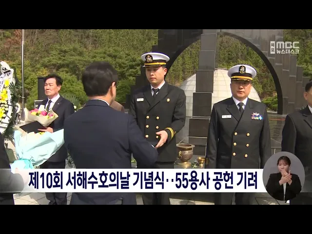 제10회 서해수호의날을 맞아 서해를 지켜낸 55용사의 공헌을 기리는 기념식이 오늘(28) 목포 현충공원에서 열렸습니다.'서해를 지켜낸 영웅들, 영원히 기억될 이름들'을 주제로 열린 행사에선 김영록 전남지사 등 250여 명이 참여한 가운데 안보의식 향상에 기여한 장병 3명 등5인에 대한 표창 수여식이 진행됐습니다.이 자...
