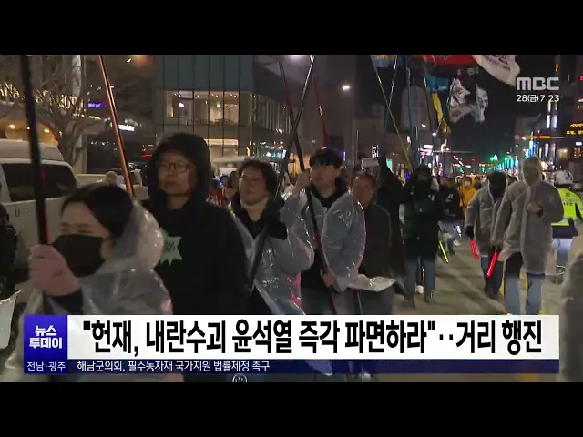 ◀ 앵 커 ▶헌법재판소가 역대 최장 심리를이어가면서 윤 대통령의 탄핵 심판 선고는결국 4월로 넘어가게 됐습니다.시민들의 분노는 이제 헌재로 향하는 가운데 삭발 투쟁과 철야 농성에 이어 야간에도 파면을 촉구하는 거리 행진이 이뤄졌습니다.김규희 기자가 보도합니다.◀ 리포트 ▶비옷을 입은 시민들이 손피켓과 깃발을 ...