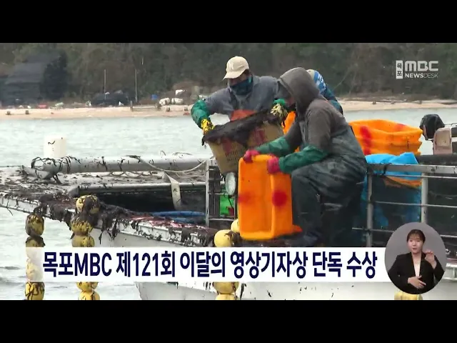 한국영상기자협회가 제121회 이달의 영상기자상 수상작에목포MBC를 선정했습니다.목포MBC 홍경석 고재필 기자의'김 값은 금값인데 물김은 헐 값에 폐기까지' 보도는 지역뉴스탐사기획보도부문에서단독으로 이달의 영상기자상을수상했습니다.