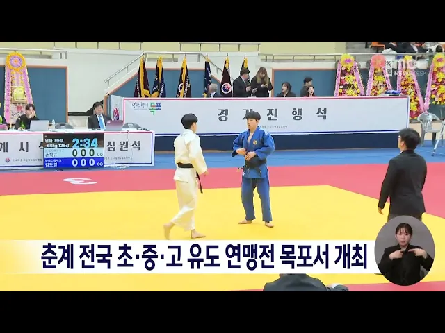 유도 꿈나무들의 등용문인 제53회 춘계 전국 초·중·고 유도연맹전이 오늘 목포실내체육관에서 막을 올렸습니다.이번 대회는 다음 달 1일까지 엿새간 열리며, 선수와 임원 등 2,200여 명이 참가해 열띤 기량을 겨룹니다.전국 초·중·고등학교 유도 대회가 유도 단일 종목으로 목포에서 열리는 것은 이번이 처음입니다.