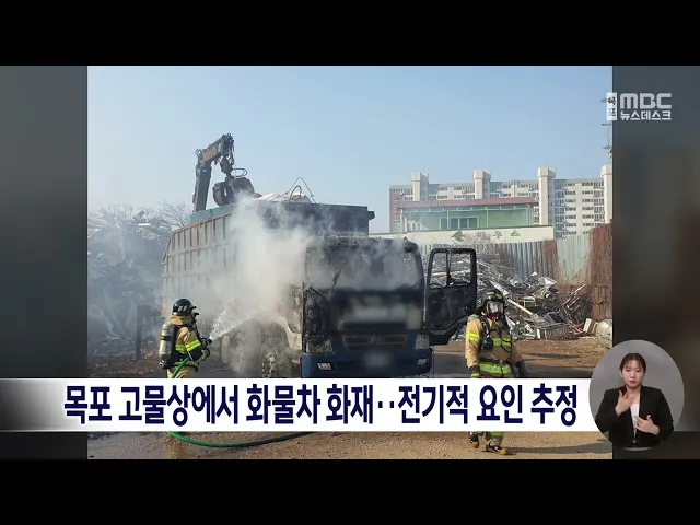 목포 고물상에서 화물차 화재..전기적 요인 추정
