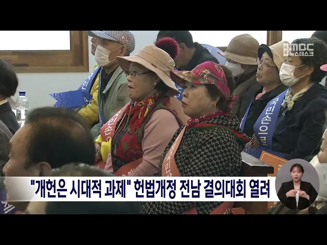 시대의 변화와 국민의 요구를 담은 헌법 개정을 촉구하는 결의대회가 오늘(25) 목포가톨릭문화회관에서 열렸습니다.사단법인 분권자치연구소 등 14개 시민사회단체가 개최한 이번 대회에서는개헌과 지방분권의 필요성과 실천 방안 등에 대해 논의하는 자리가 마련됐습니다.이재창 지방분권전남연대 공동대표는개회사를 통해...