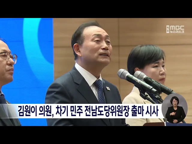 더불어민주당 김원이 의원이차기 전남도당위원장 선거에출마하겠다는 뜻을 밝혔습니다. 김 의원은 오늘(24) 국회에서 가진 목포MBC와의 인터뷰를 통해 “주철현 도당위원장의 지방선거 출마 시 치러질 보궐선거는 초선이나 3선 의원에겐 적절하지 않고,위원장으로서 대선을 치르는 의미가 있다”며 출마 결심 배경을 밝혔습니...