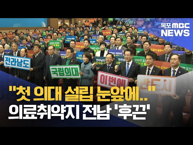 ◀ 앵 커 ▶전남권 의대 신설을 촉구하는 범도민 결의대회가 1년 만에 국회에서 다시 열렸습니다.이 자리에서는 정부에 전남 국립의대 설립 약속을 지킬 것을 촉구하는 한편,공공의료인력의 실질적 유치를 위한구체적 제안들도 쏟아져나왔습니다.서일영 기자가 취재했습니다.◀ 리포트 ▶[반투명] 전남 대규모 산업단지에서 응...