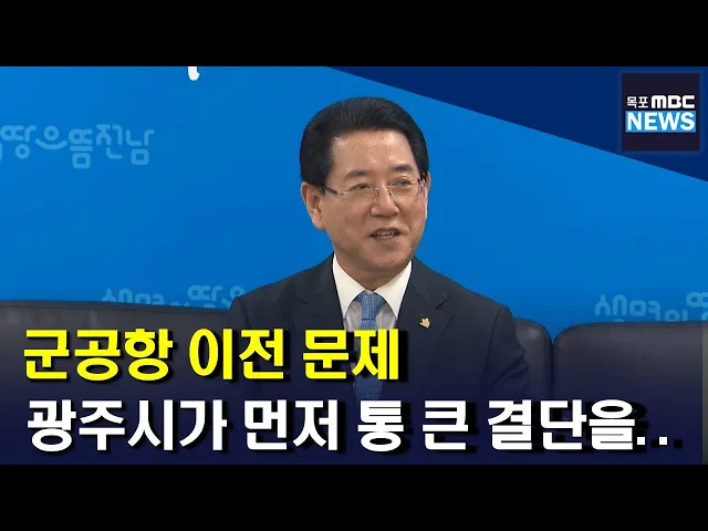 ◀ANC▶ 광주 군공항 이전 문제에 대해 강기정 광주시장이 연일 발언한 것과 달리 김영록 전남지사는 그동안 소극적인 입장을 보여 비판 여론이 많았는데요. 김 지사가 군공항 이전 문제 등에 대해 공식적인 입장을 직접, 처음으로 밝혔습니다. 군공항 특별법이 통과됐다고 해서 모든 것이 해결된 것은 아니며, 군공항을 ...