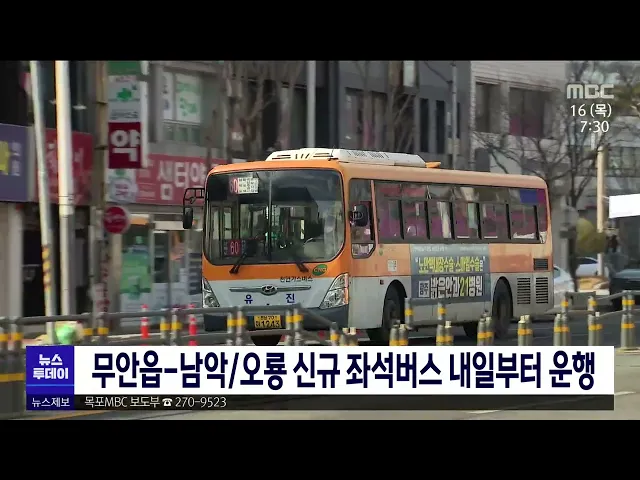 무안읍-남악/오룡 신규 좌석버스 17일부터 운행