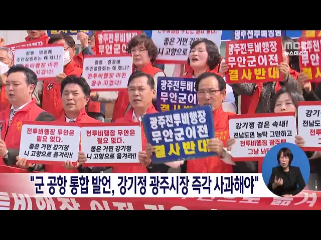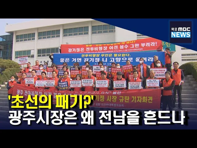 이호성 무안군의원이 광주 군공항을 무안공항에 통합시키겠다고 발언한 강기정 광주시장은 무안군민에 사과하라고 주장했습니다. 이호성 의원은 광주시가 군 공항 이전부지를 무안군으로 미리 정해놓고 추진해 왔다는 사실이 이번에 드러났다며 무안군은 강기정 시장 항의 방문, 광주시청 앞 규탄 결의대회 개최 등 적극적...